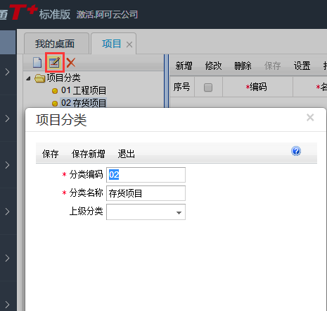 用友T+12.1如何修改项目大类名称?