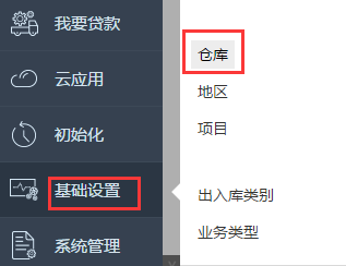 2.左下角点击基础设置---仓库;