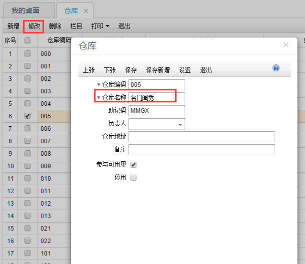 用友T+12.1怎么样修改仓库名称?