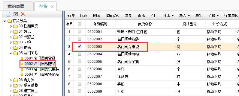 3.选中存货所属分类---选中修改商品;