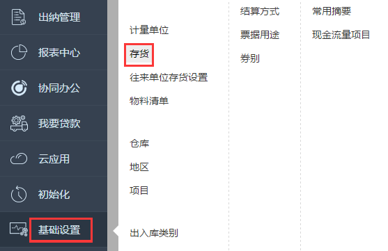 2.左下角点击基础设置---存货;