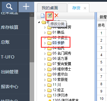 4.点击修改,修改存货分类。