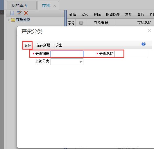 4.输入分类的编码、名称。