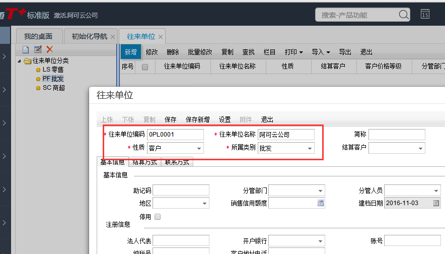 T+12.1怎样添加客户档案?