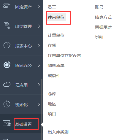 2.左下角点击基础设置--往来单位;