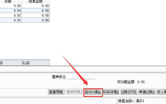 3、点击下面的自动分配,分配核销金额。