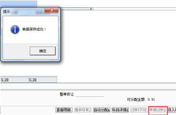 4、点击单据过账,保存成功即可。