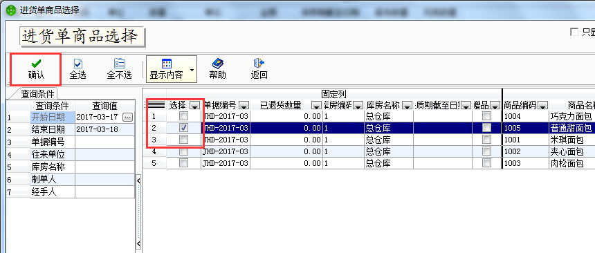 5、确认一下退货数量,出库仓库等资料,确认无误之后点击单据过账,提示保存成功即可。
