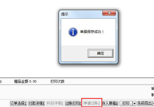 3、确认单据资料无误之后,点击单据过账或者存入草稿,提示单据保存成功即可。