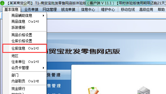 1、登陆软件打开基本信息——仓库信息。