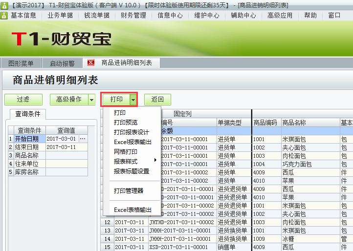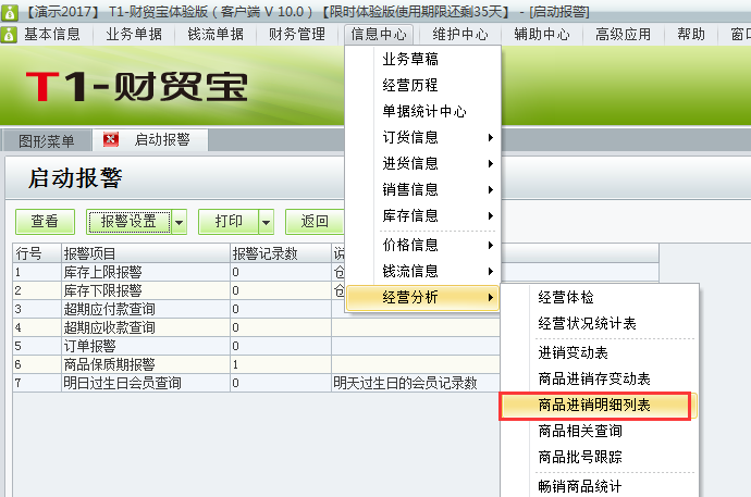 如何在用友t1财贸宝10.0中查询商品进销明细?