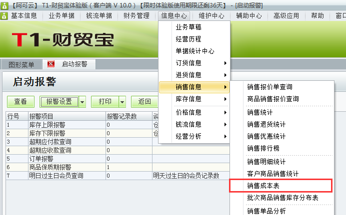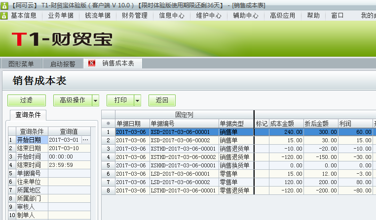 如何查询用友t1财贸宝10.0的销售成本?