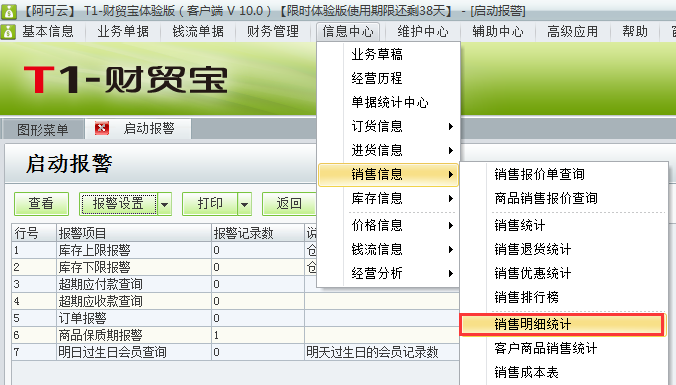 用友t1财贸宝10.0如何查询销售明细统计?