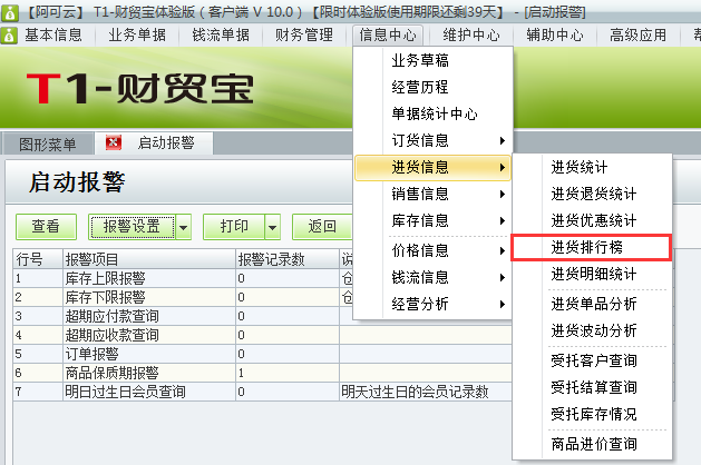 1、登录软件打开信息中心——进货信息——进货排行榜。