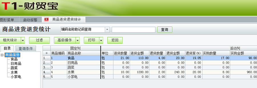 t1财贸宝10.0如何查询进货退货情况?