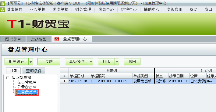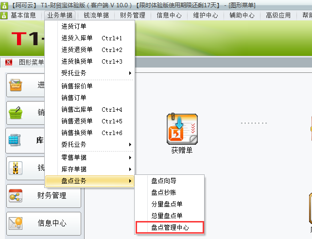 1、登录软件打开业务单据——盘点单据——盘点管理中心。