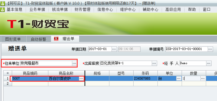 赠送客户商品在用友t1财贸宝10.0应该如何处理?