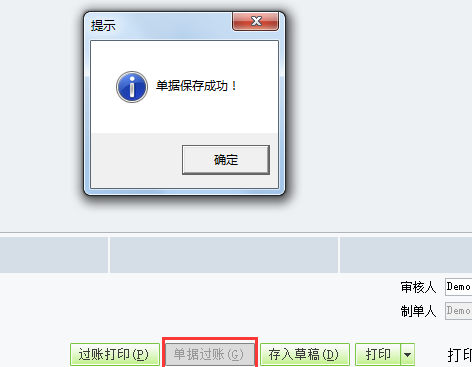 3、确认单据无误之后点击单据过账,提示单据保存成功即可。