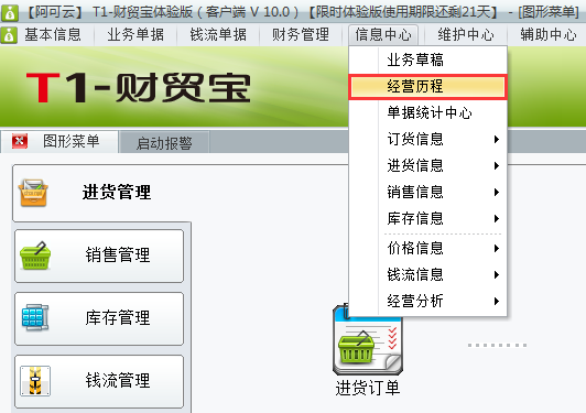 1、登录软件打开信息中心——经营历程。