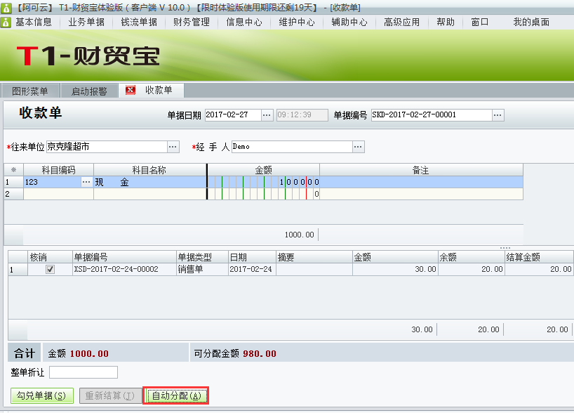 7、确认单据无误之后点击单据过账,提示单据保存成功即可。