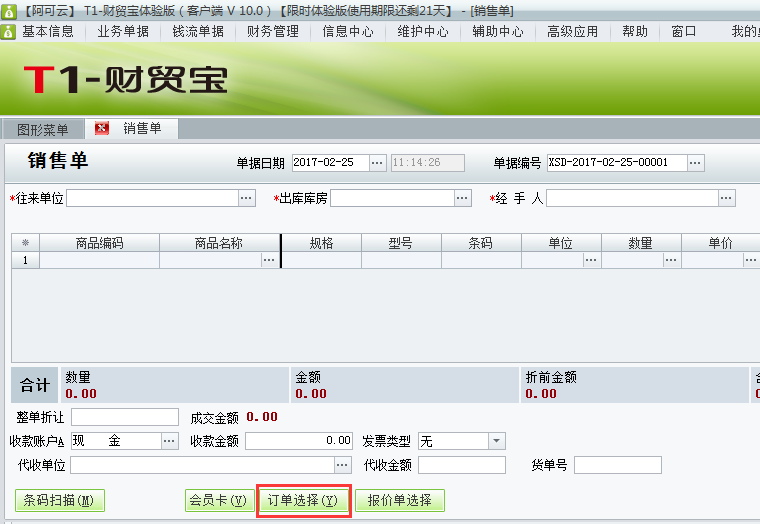 用友t1财贸宝10.0如何由销售订单生成销售出库单?