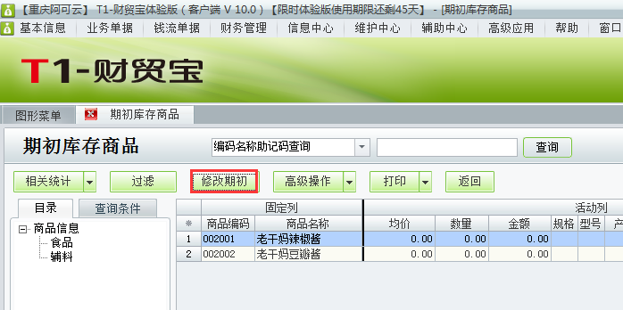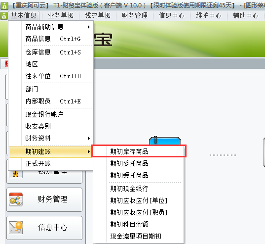 1、登录软件打开基本信息——期初建账——期初库存商品。