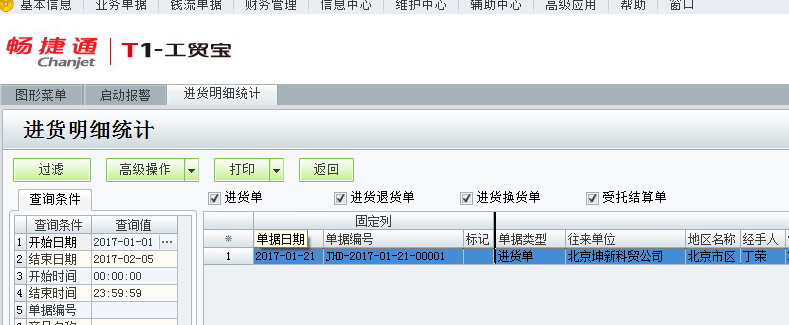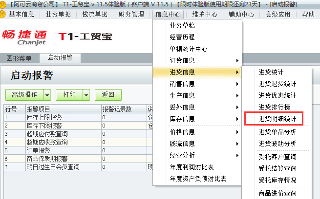 1、登录软件打开信息中心——进货信息——进货明细统计。