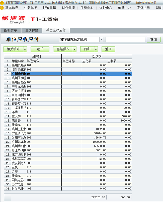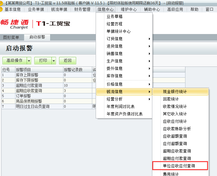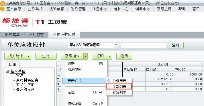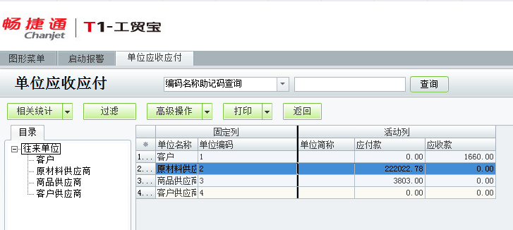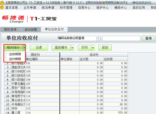 用友t1工贸宝如何查询某单位的应收应付款?