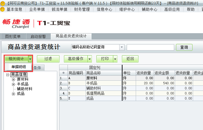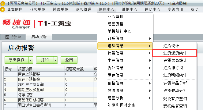 用友t1工贸宝11.5如何查询进货退货情况?