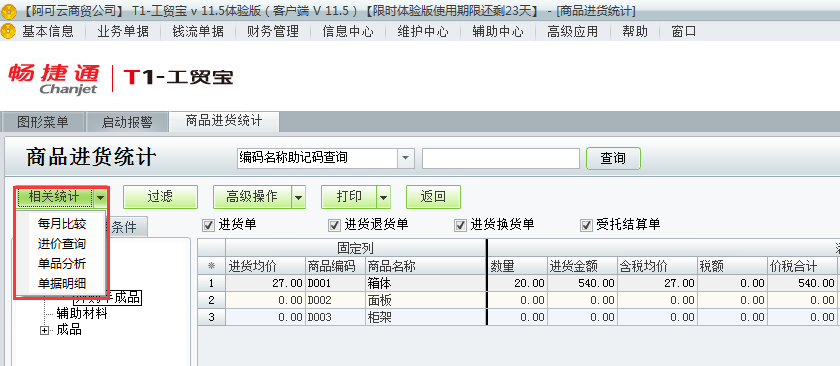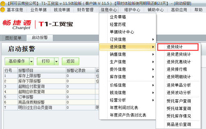 用友t1工贸宝11.5如何查询进货统计?