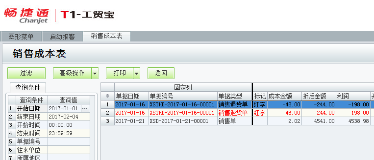 1、登录软件打开信息中心——销售信息——销售成本表。