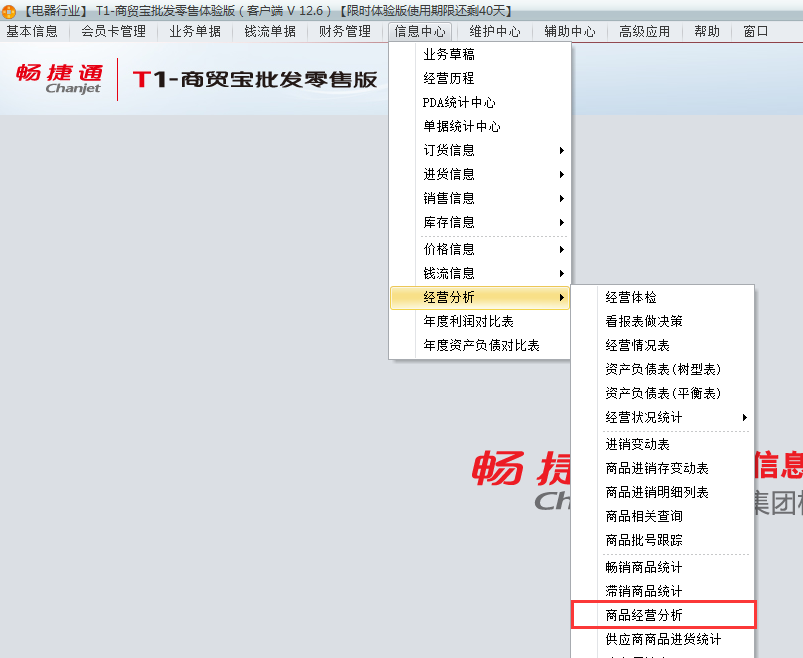 1、登录软件打开信息中——经营分析——商品经营分析。