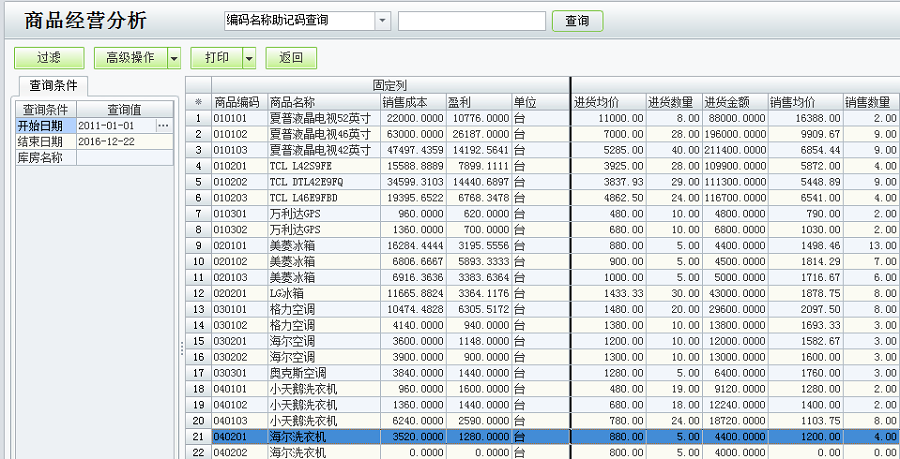 用友t1商贸宝批发零售版12.6如何查询所有商品的经营情况?