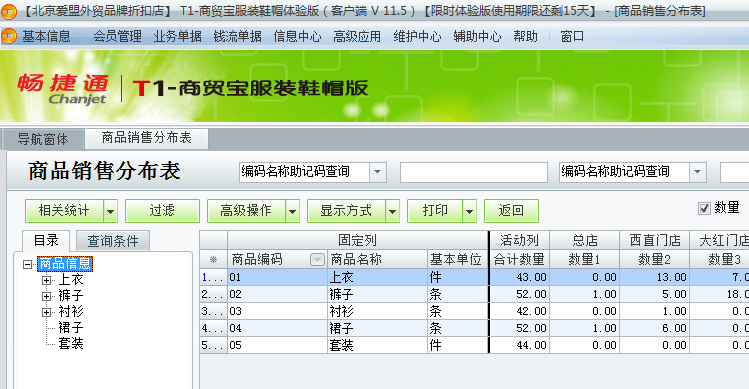 如何查询用友t1商贸宝服装鞋帽版11.5各个门店的销售情况?