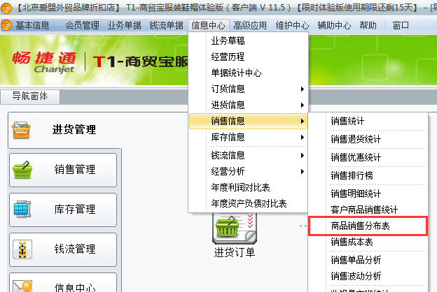 1、登录软件打开信息中心——销售信息——商品销售分布表。
