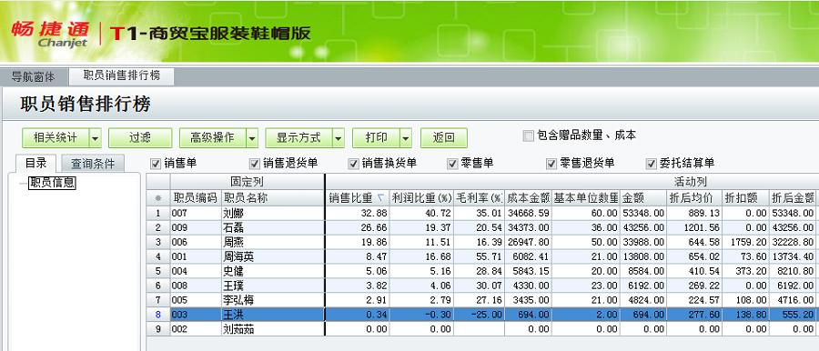t1商贸宝服装鞋帽版11.5如何查询销售人员的销售业绩排行?
