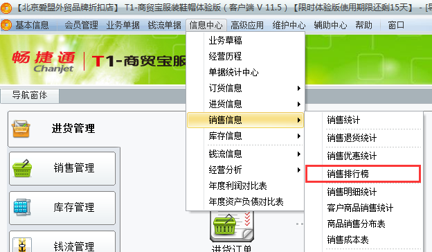 用友t1商贸宝服装鞋帽版11.5如何查询销售人员的销售业绩排行?