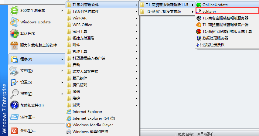 1、在电脑的开始菜单中找到t1商贸宝服装鞋帽版将scktsrvr复制,