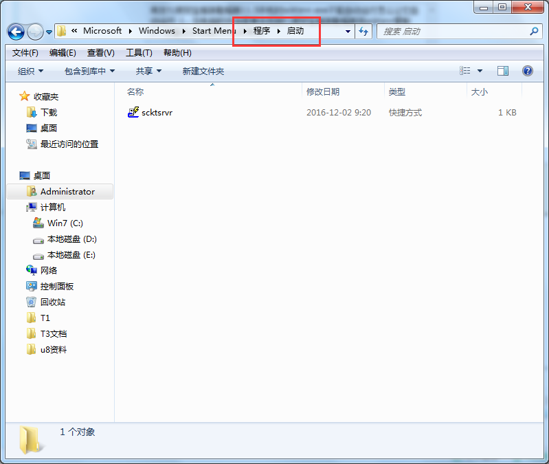 3、将scktrvr粘贴在程序——启动文件夹里面。