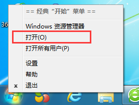 2、右键点击电脑的开始菜单点击打开。