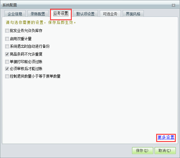2、选择业务配置界面打开更多设置。