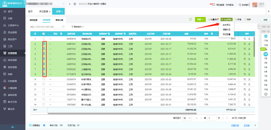 好会计可以通过导入进项票生成凭证,如果多张发票来自于同一个供应商,我们想要合并生成凭证,而不是每张发票都生成一个凭证,该如何操作呢?