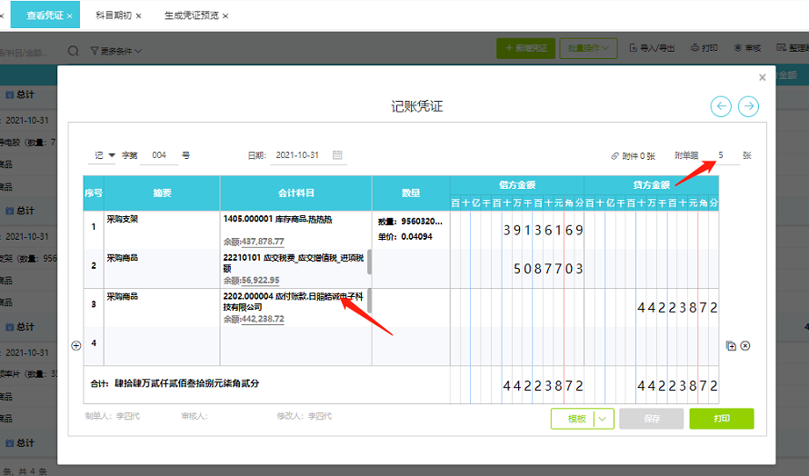 同一供应商的5张发票合并生成了一张采购凭证,同理销售发票也是一样的操作。