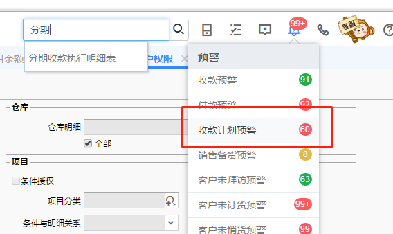 T+分期收款里的收款计划预警可以显示出来,如下