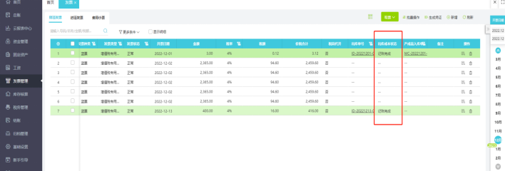 销项发票列表齿轮,有出库成本状态字段,该字段默认不勾选。可配置成勾选显示改字段,无实际作用。