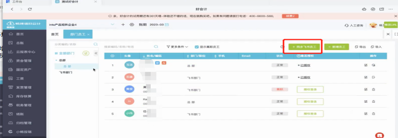 02飞书好会计新增同步部门员工