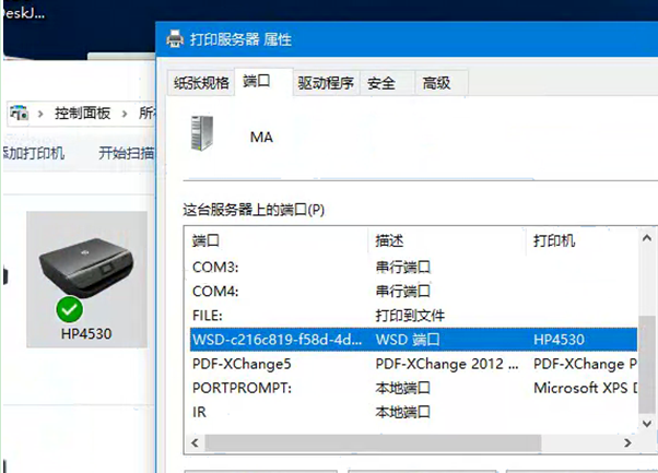 无线打印机,显示的端口为WSD端口