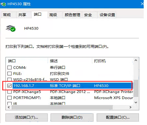 添加好之后要把当前打印机的端口配置为TCP/IP端口