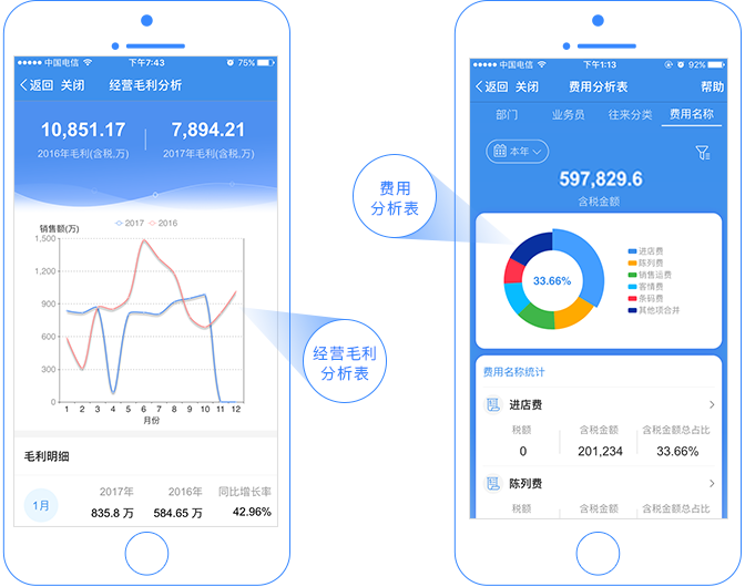 提供了全方位的企业经营分析报表,掌握经营情况,实时决策