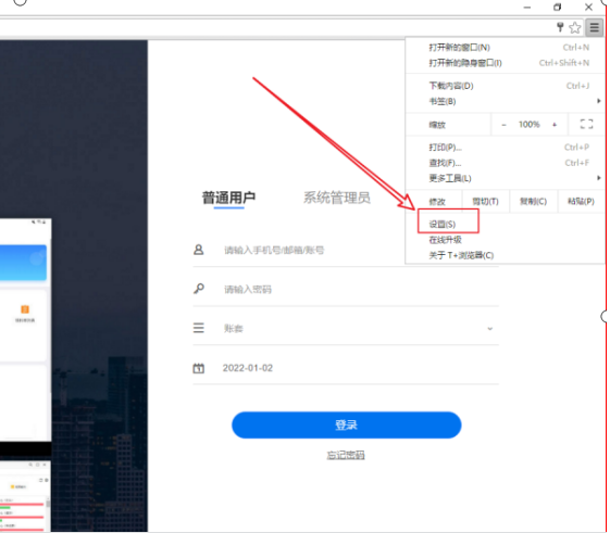 在重新安装了T+浏览器或者在客户端上,打开T+浏览器不能直接跳转T+登录页面,需要怎么设置?